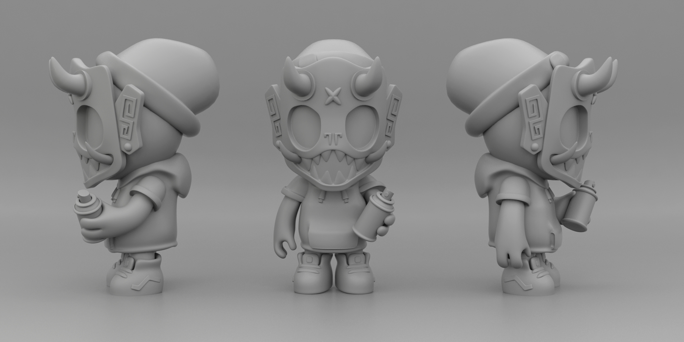 Although I designed several versions of my dokkaebi (see 3D characters), Puck - Little Painter was ultimately the model that became my first vinyl toy. The name is a reference to the fairy in Shakespeare’s A Midsummer Night’s Dream who, like the dokkaebi, is known for being mischievous. I was very fortunate to partner with Strange Cat Toys and together we have created a number of variations of Puck.