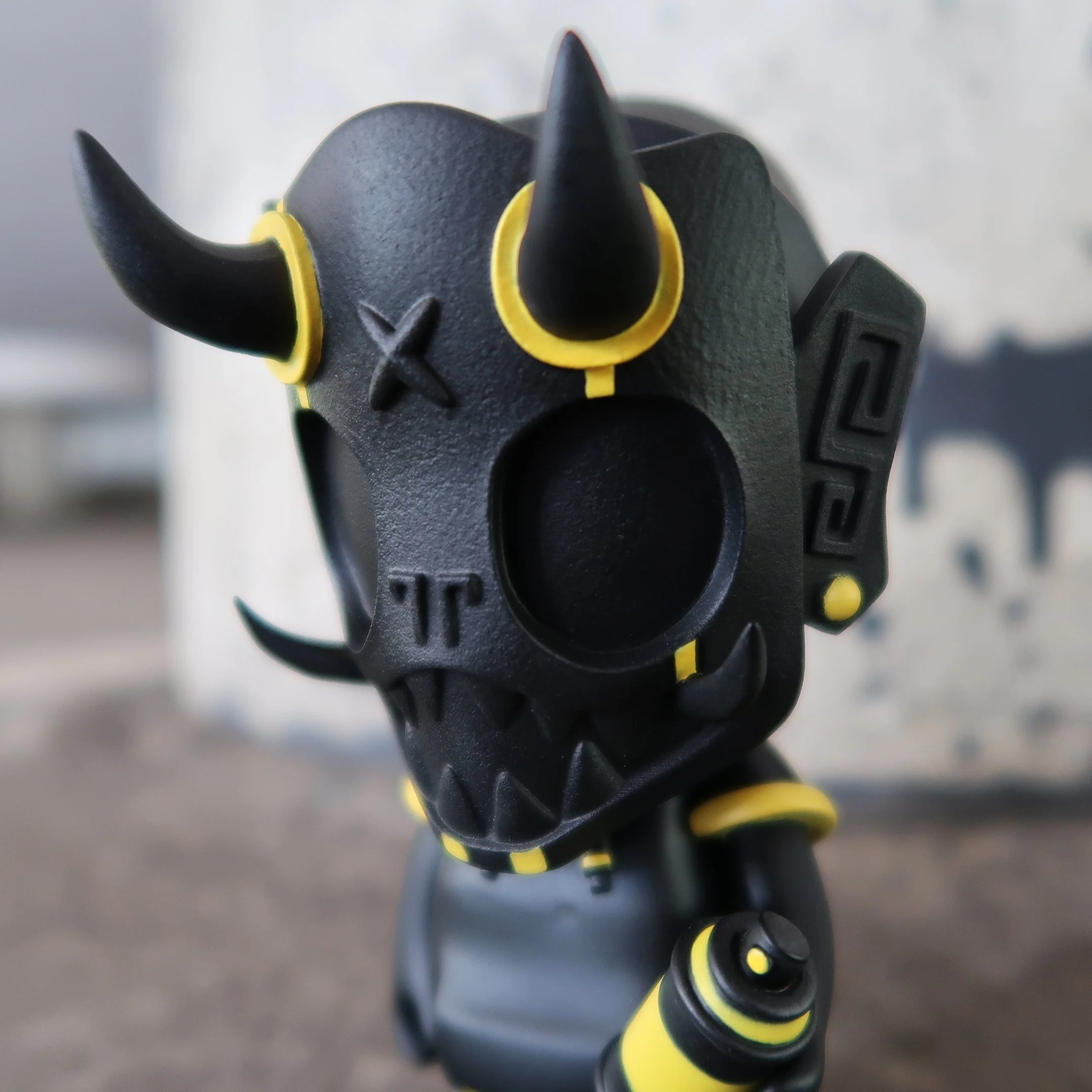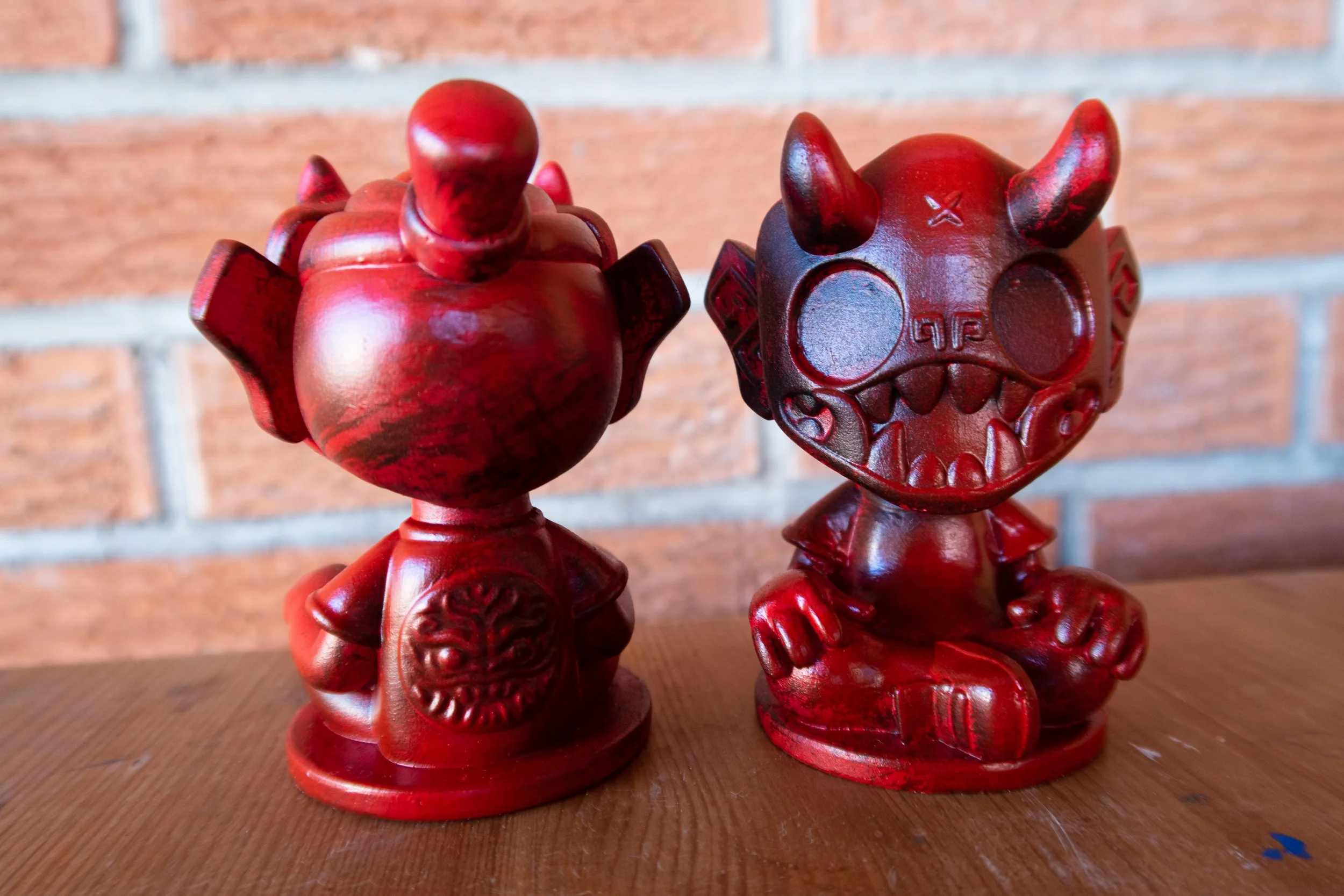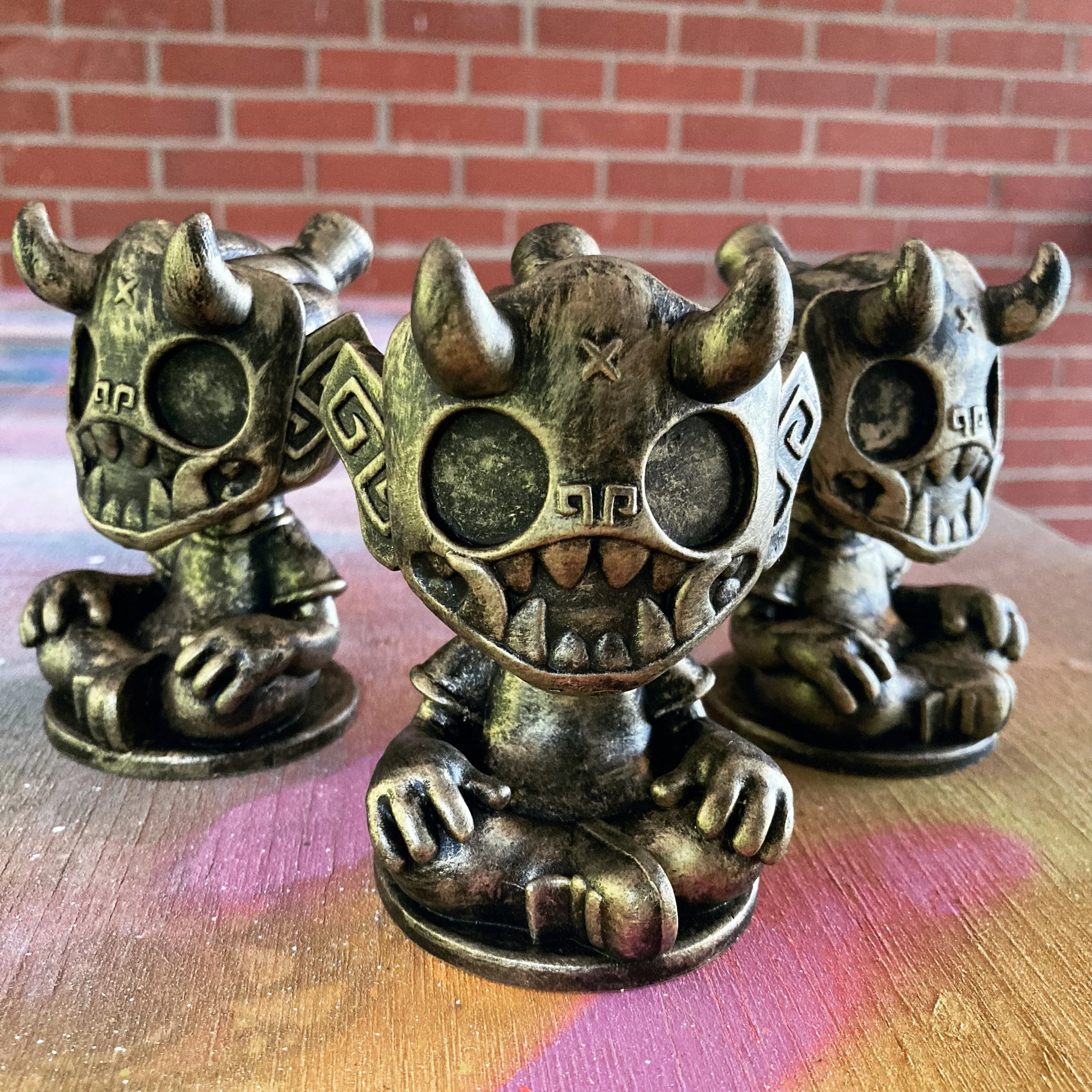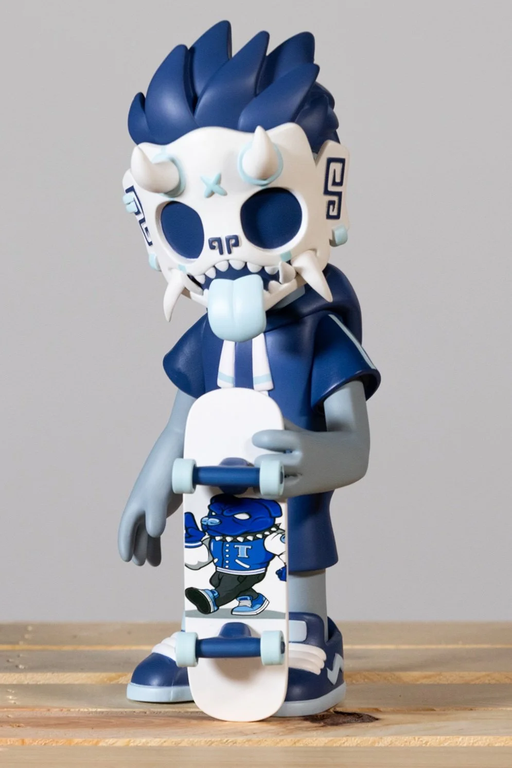 Our second round of toys introduced this skater dokkaebi. Each one of these vinyl toys stands 8” tall, comes with a unique sticker pack to customize their skate decks and was limited tof 100pcs.