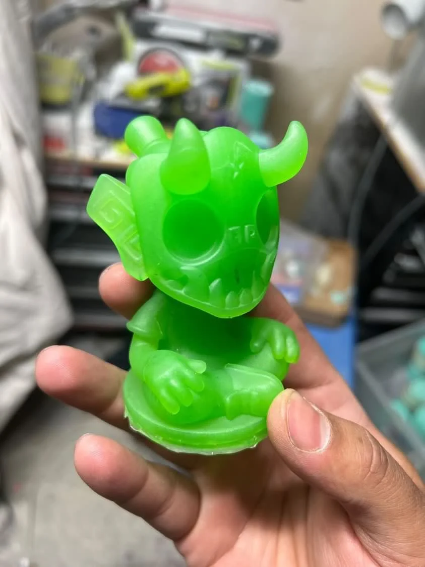 My first collaboration with Maryland based artist 5thTurtle. I designed 3D molded the character in Nomad Sculpt and he brought it to life. For this toy we wanted it to feel like a jade figure. Each one was hand made and therefore slightly unique. They were released at Five Points Fest 2023 in New York. Each one of these toys stands 4” tall and was limited to 18pcs.