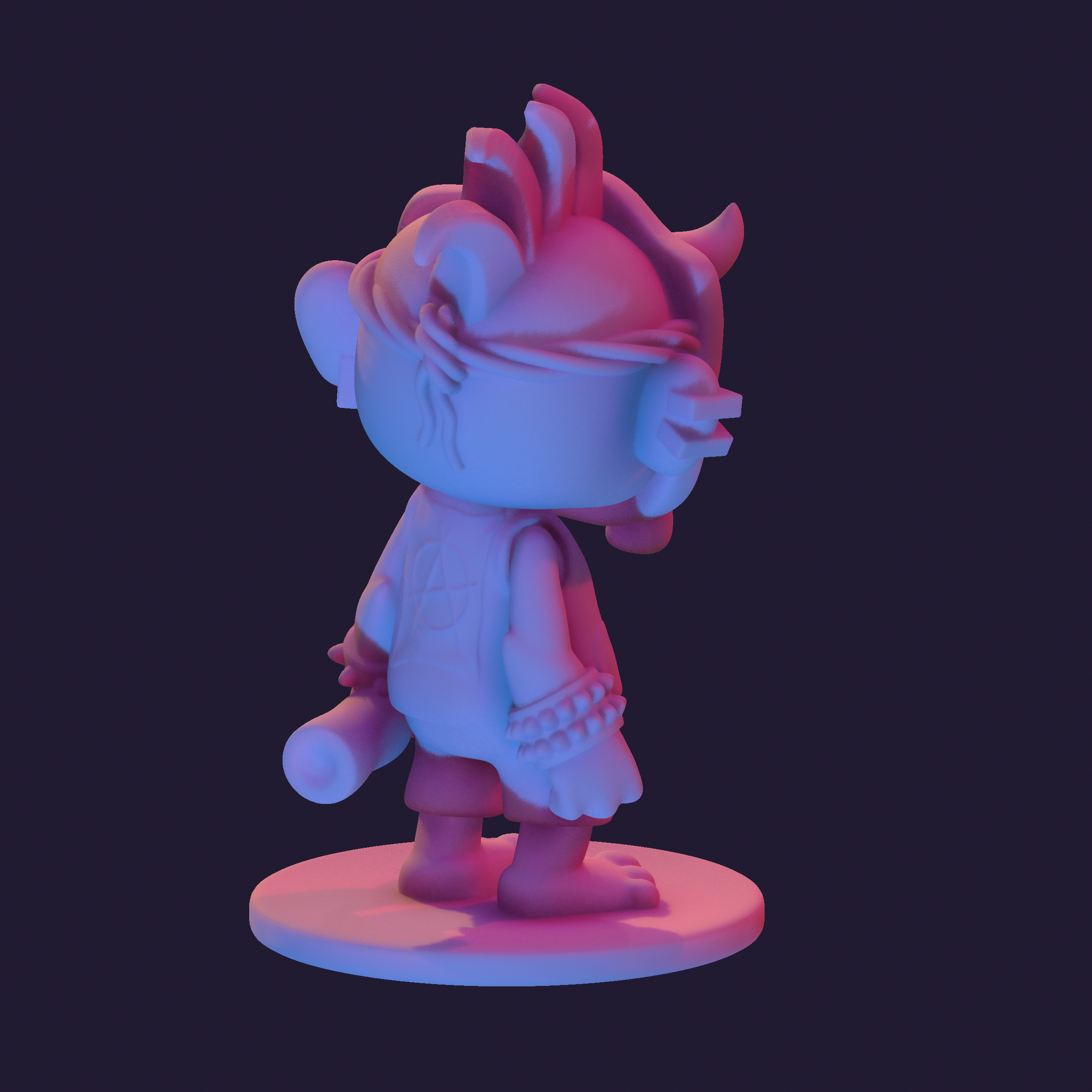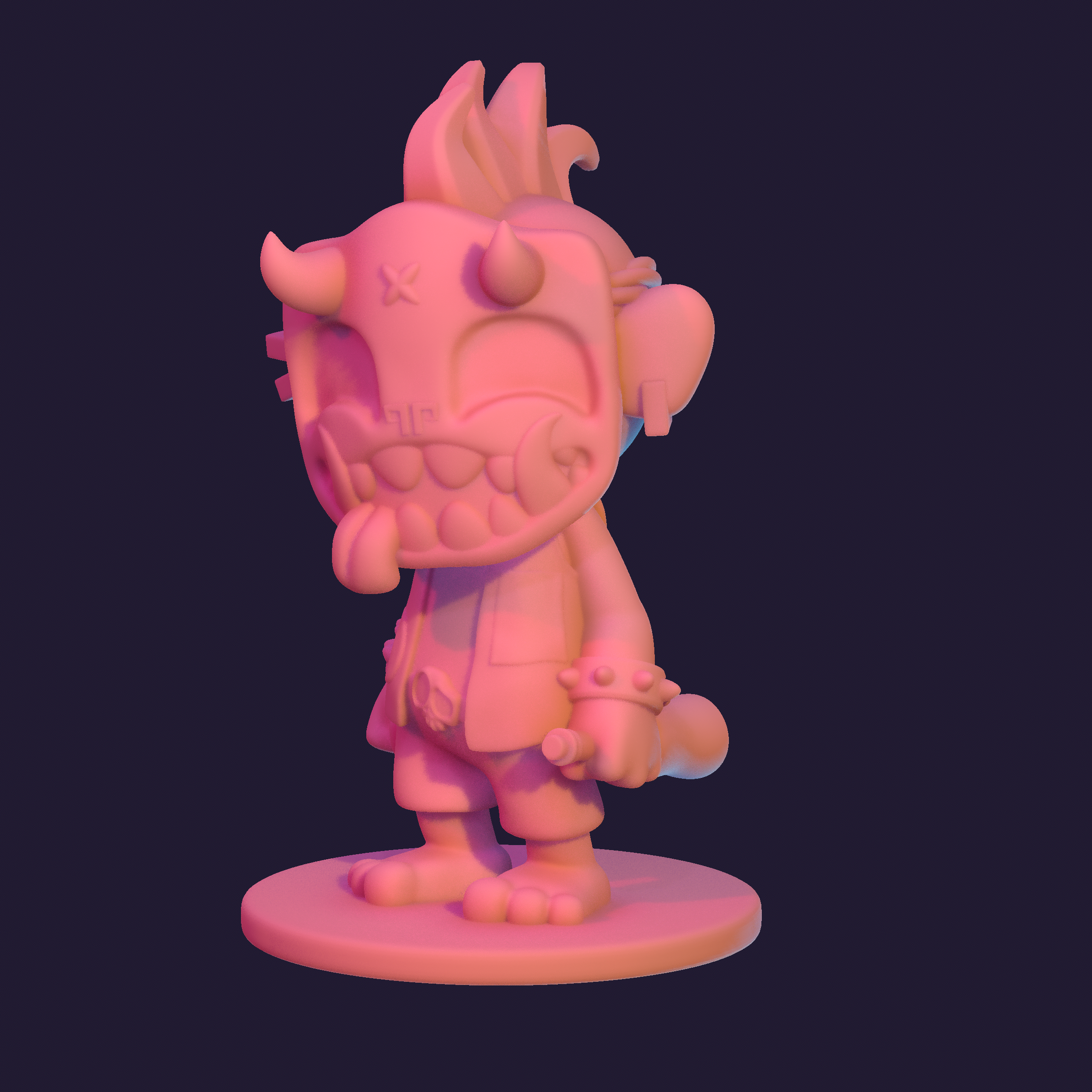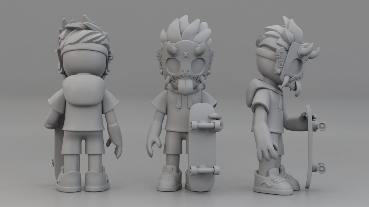 In 2019, I had the opportunity to learn basic 3D modeling from a coworker. As an illustrator and character designer, I was thrilled to take on the challenge of bringing my signature dokkaebi goblin character to life. Dokkaebi, mischievous goblins from Korean folklore known for their playful pranks on humans, inspire my work. My illustrations offer a modern interpretation of these creatures, and I aimed to capture that same spirit in the 3D model.