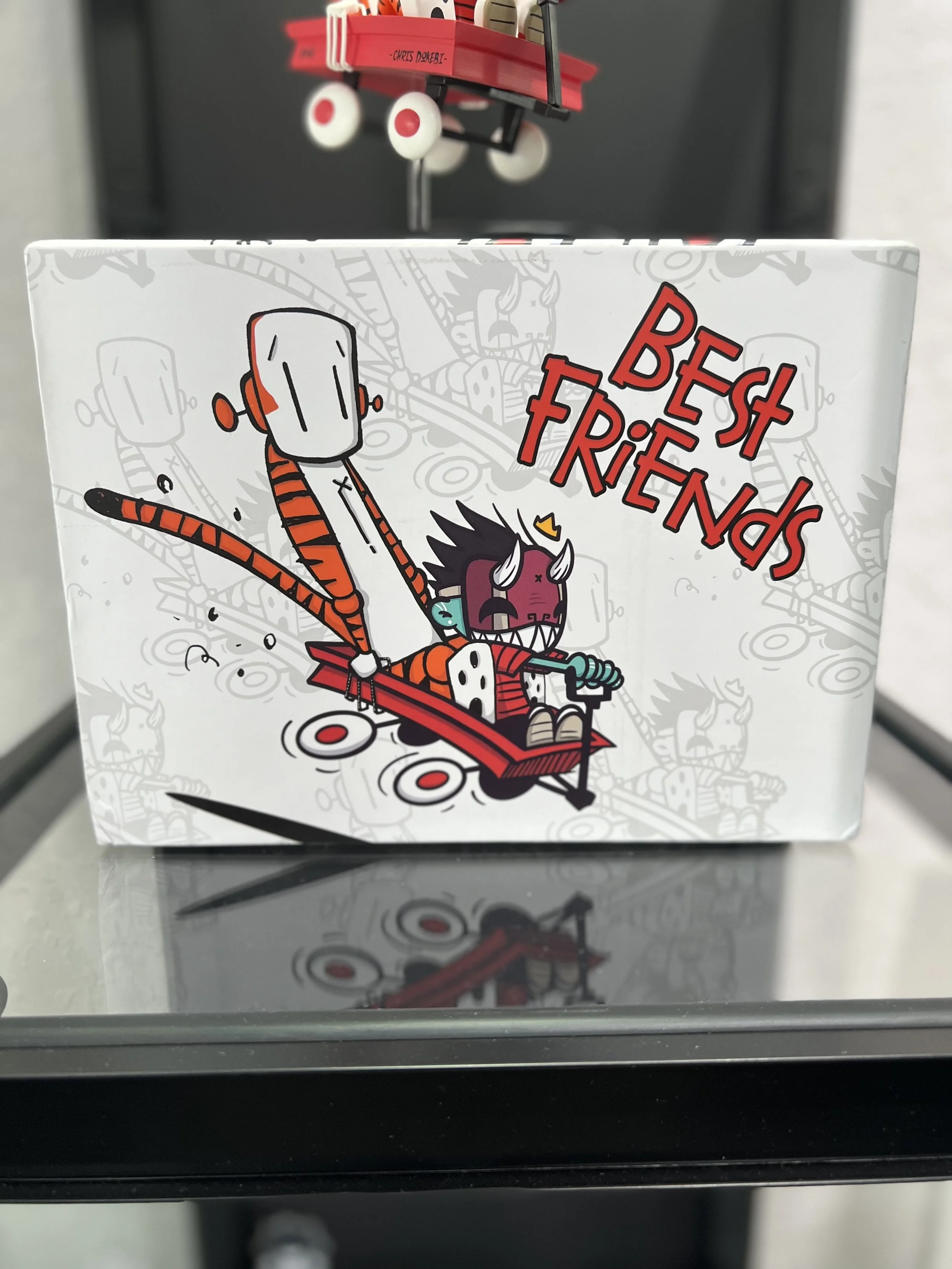 Inspired by our Calvin and Hobbes sticker collaboration, Chris RWK and I produced a vinyl toy with Strange Cat Toys. Best Friends is a resin toy that stands 7” tall and 8” long. We produced a very limited run of 200pcs.