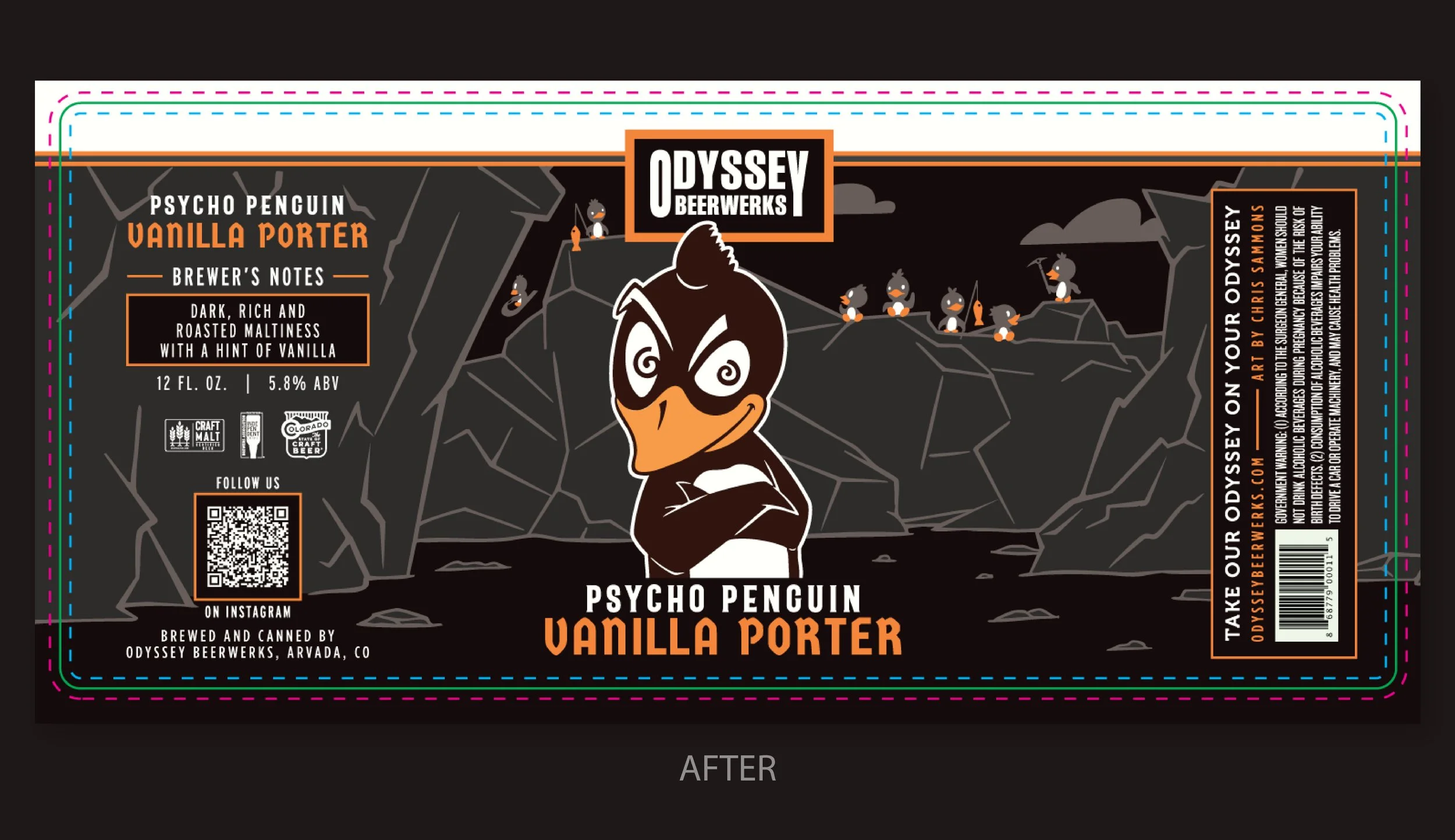 This design underwent minimal changes. Odyssey wanted to migrate the existing illustrations to their updated label template and make slight color adjustments to enhance vibrancy and overall contrast.
