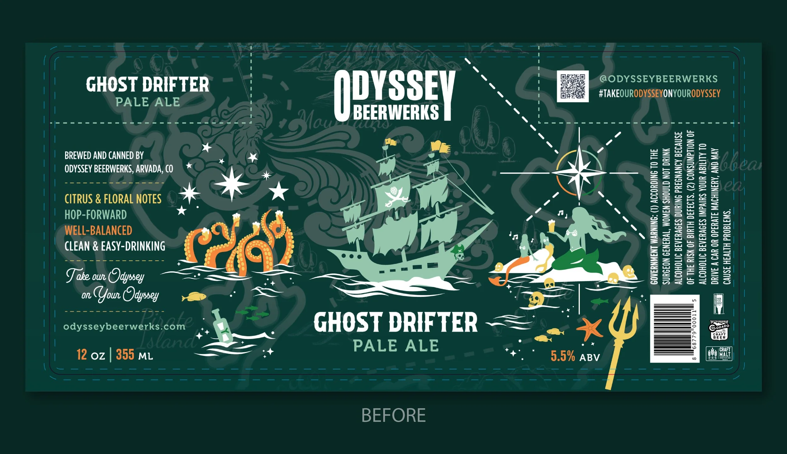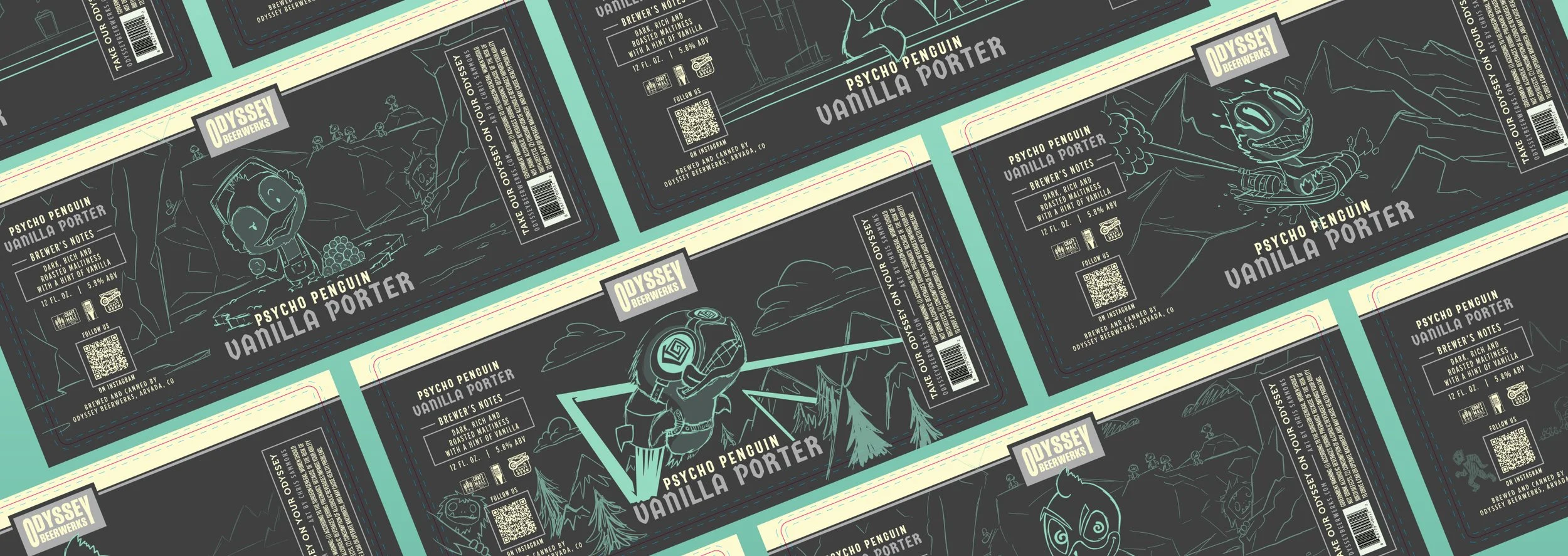 Odyssey Beerwerks reached out to me to redesign their core lineup and create two new label designs. They were seeking a cleaner, more streamlined aesthetic that would still maintain visual ties to their existing branding. The goal was to enhance shelf appeal and boost sales in liquor stores by more effectively capturing customer attention.