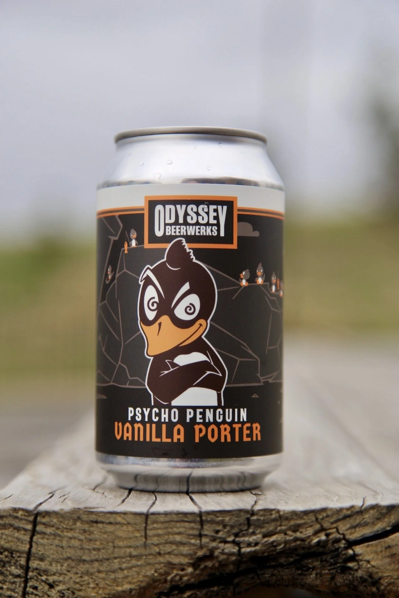 The goal for Psycho Penguin was to simplify the design by removing excess detail and redefining the visual hierarchy to highlight a single, central illustration. Odyssey emphasized that the penguin should appear mischievous and wild—but not evil. Since this is one of their most popular beers, we went through an extensive ideation process (see images below) before arriving at the final design: a playful penguin rendered in a classic, vintage cartoon style.
