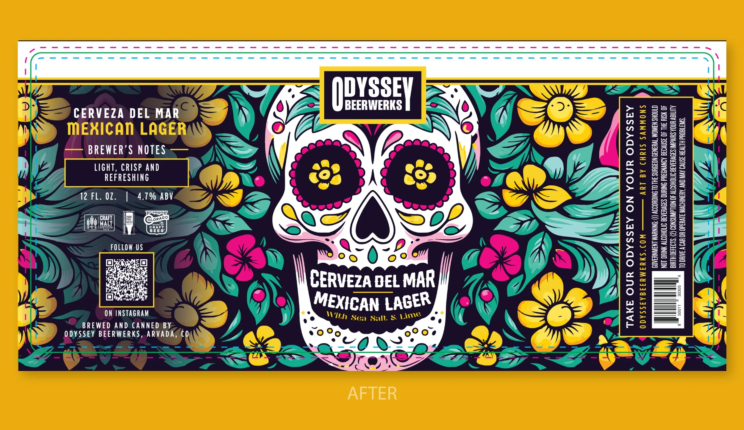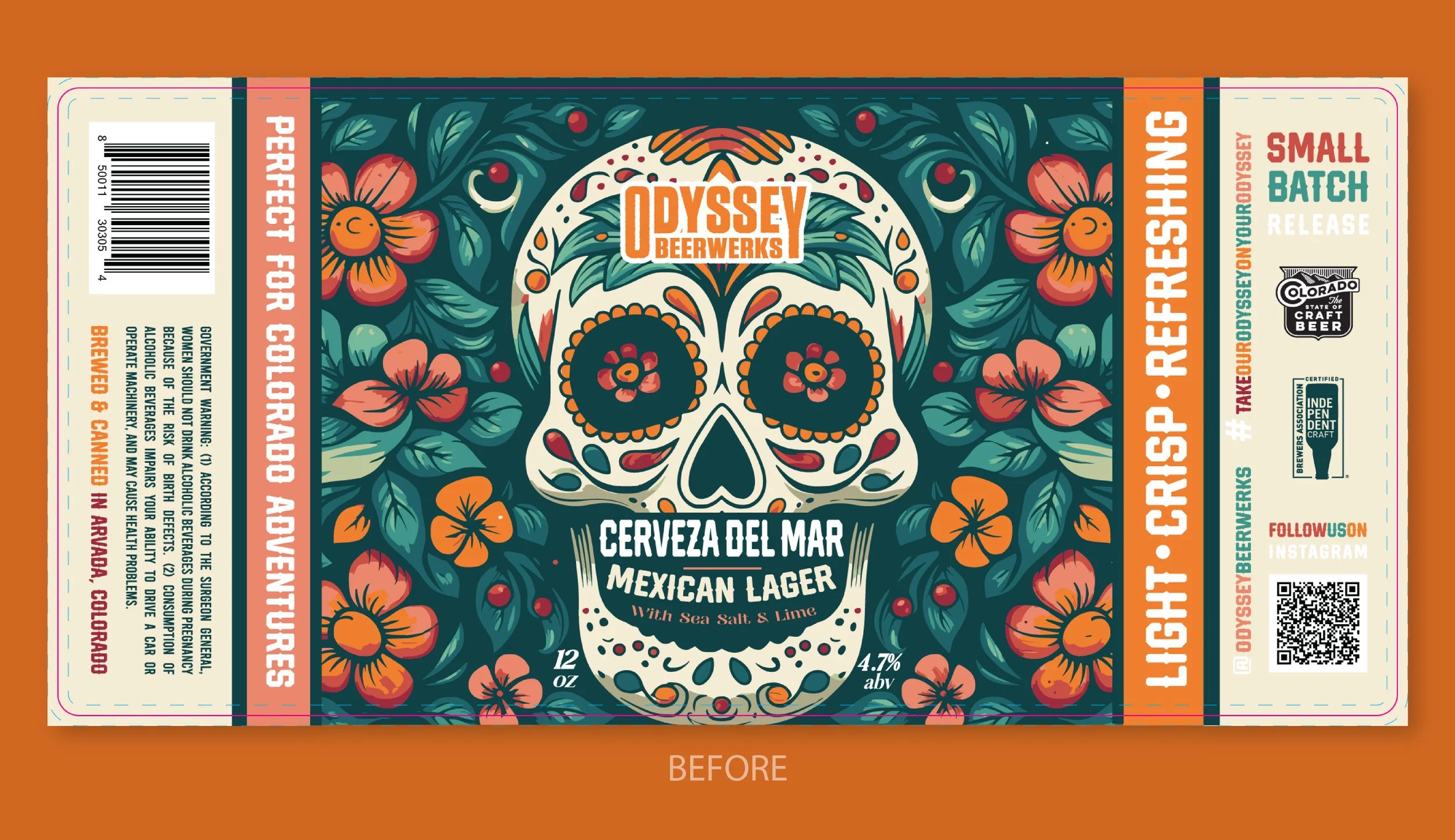 Although Cerveza Del Mar isn’t part of Odyssey’s core lineup, its popularity as a seasonal favorite made it a priority for an updated label. The refresh involved only minor artistic changes and reformatting it to fit the new template. I enhanced the contrast and vibrancy to ensure the design stands out on shelves and effectively captures consumer attention.